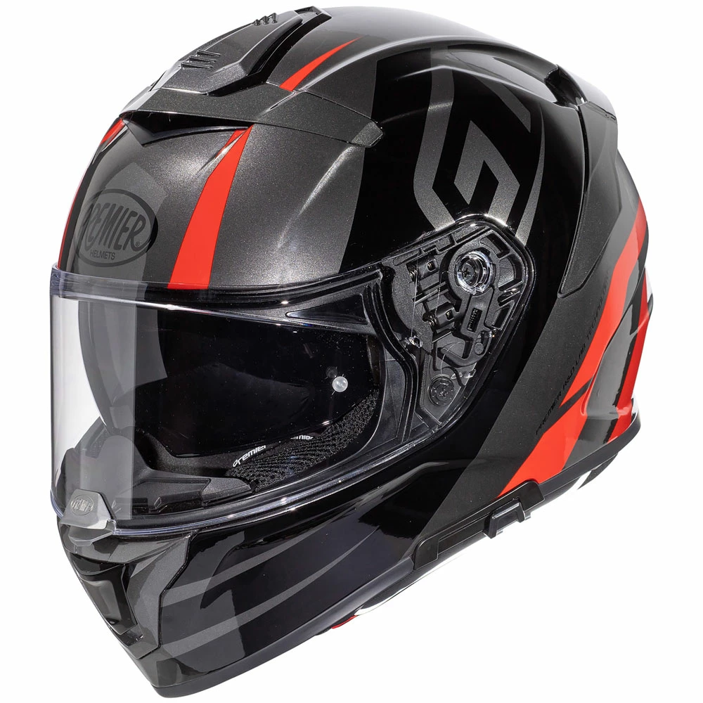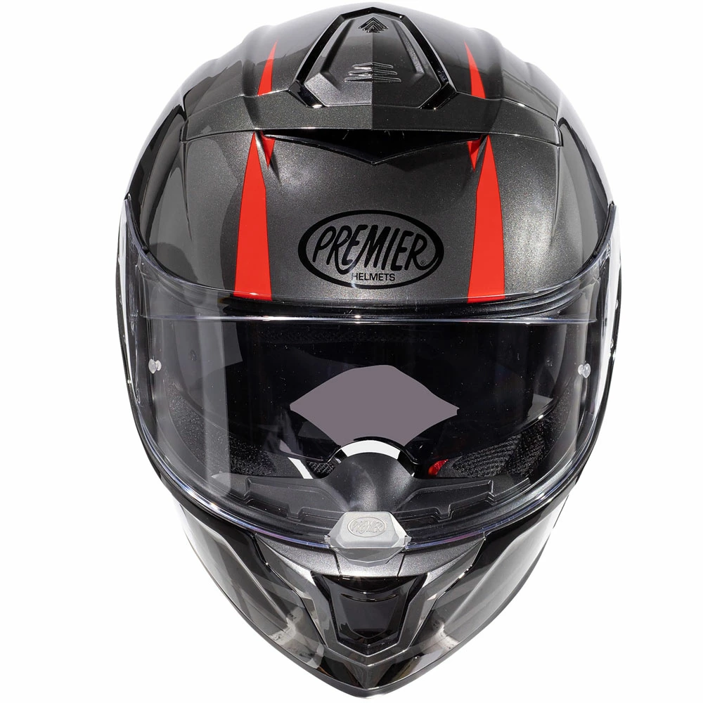 Devil is premier’s big news for 2020: it is a full-face helmet for tourist use, so designed and designed for long distances, but inspired by the shapes of the track world. The result is a product suitable for those who want a helmet suitable for long distances without sacrificing aerodynamic design. In this model Premier wanted to concentrate all the best of the knowledge of its R&D department, always looking for innovative and practical solutions to meet the needs of even the most demanding tastes. A team dedicated exclusively to this project has created Devil completely from scratch, focusing on the smallest details: from the aspect of security to its great silence, which make it a prominent element of the new collection. The whole Devil project, from prototype to design to graphics are an exclusive Premier. Devil was born as a helmet suitable for great journeys, and each of its details reflects the desire to make the trip a unique driving experience in complete comfort. Thanks to the continuous studies of our R&D department, the visor has been expanded by as much as 11% to give the rider a greater field of view than previous Premier models. In addition, in addition to the polycarbonate visor, it is equipped with a dark internal visor that allows optimal driving in all weather and light conditions, and that is operated by a comfortable lever placed on the left side of the helmet. To overcome the problem of fog in case of thermal changes is equipped with Pinlock lensยฎ included in the price, which can be mounted comfortably without the aid of equipment. Another special studied specifically is the lock lock of the visor, placed on the chin: usually present in racing-type helmets, Premier wanted to equip Devil with this special mechanism that with a simple click makes the helmet quieter and safer even at high speeds. An eye was also placed on the ventilation system, which consists of three elements: a wide air intake placed in the front and one on the chin allow for optimal ventilation at both the top and bottom, while the extractor in the back of the helmet allows a perfect leakage of hot air, so as to leave the interior always fresh and to ensure optimal recirculation. Thanks to the “Advanced Padding System”, a kit included in the package that allows you to customize the interior, the fit is comfortable at the highest level. They are made of breathable materials and made anallergic thanks to the Sainitized treatment, fully removable and washable. To make the ride even more comfortable, the padding has been arranged in such a way as to make enough space to drive with prescription lenses, thanks to the Easy Fit system. Devil is equipped with a micrometric closure, which allows it to release as quickly as any respectable touring helmet, and is prepared for the installation of Bluetooth communication systems. The internal canopy consists of EPS material, a particular pressed polystyrene that is allocated at a differentiated density to several zones, and which allows an excellent response in the event of a collision by dispersing the energy released evenly. The outer canopy is produced by using two mold sizes, in order to make the product more efficient depending on the size required: the small canopy covers sizes ranging from XS to M, while the larger canopy covers sizes ranging from M to XXL. It is made using the use of carbon fiber combined with epoxy of the latest generation, in order to make the canopy very light but at the same time elastic and extremely resistant to shocks. Devil comes in two carbon variants, both shiny and opaque, and in three color-diversifying graphics, for a total of thirteen color variants. The Gran Turismo graphic (GT variant) is characterized by a color block surrounded by lines that cover the canopy. The design that traces the elegance and purity of colors in the shapes create a helmet that will not go unnoticed in the new Premier 2020 collection. The Predator (PR variant) graphics are curated in every detail and highly detailed detail, featuring an aggressive and eye-catching design that makes the helmet extremely sporty. A careful choice of colors make Predator a one-of-a-kind piece in the new collection. The Electro graphics (EL variant) are finally distinguished by its originality. Energy is the soul of Electro. The distinctive style given by pointed shapes and combined with fine lines create an energy that retrace the entire cap that combined with the perfect aerodynamics of the helmet, make Electro an excellent element for fans with a strong and sporty personality. The Devil series is completed by the elegant monochrome variants in glossy white and matte black. It has an ECE 22/05 approval certificate. Dark smoked visor included in the box.