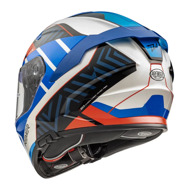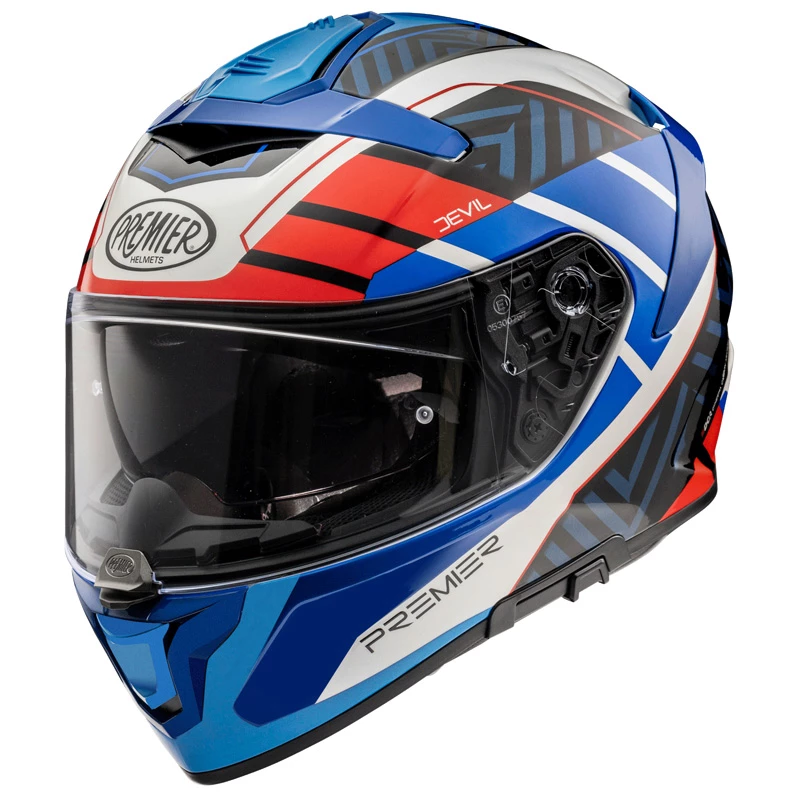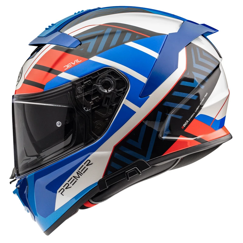 Devil is premier’s big news for 2020: it is a full-face helmet for tourist use, so designed and designed for long distances, but inspired by the shapes of the track world. The result is a product suitable for those who want a helmet suitable for long distances without sacrificing aerodynamic design. In this model Premier wanted to concentrate all the best of the knowledge of its R&D department, always looking for innovative and practical solutions to meet the needs of even the most demanding tastes. A team dedicated exclusively to this project has created Devil completely from scratch, focusing on the smallest details: from the aspect of security to its great silence, which make it a prominent element of the new collection. The whole Devil project, from prototype to design to graphics are an exclusive Premier. Devil was born as a helmet suitable for great journeys, and each of its details reflects the desire to make the trip a unique driving experience in complete comfort. Thanks to the continuous studies of our R&D department, the visor has been expanded by as much as 11% to give the rider a greater field of view than previous Premier models. In addition, in addition to the polycarbonate visor, it is equipped with a dark internal visor that allows optimal driving in all weather and light conditions, and that is operated by a comfortable lever placed on the left side of the helmet. To overcome the problem of fog in case of thermal changes is equipped with Pinlock lensยฎ included in the price, which can be mounted comfortably without the aid of equipment. Another special studied specifically is the lock lock of the visor, placed on the chin: usually present in racing-type helmets, Premier wanted to equip Devil with this special mechanism that with a simple click makes the helmet quieter and safer even at high speeds. An eye was also placed on the ventilation system, which consists of three elements: a wide air intake placed in the front and one on the chin allow for optimal ventilation at both the top and bottom, while the extractor in the back of the helmet allows a perfect leakage of hot air, so as to leave the interior always fresh and to ensure optimal recirculation. Thanks to the “Advanced Padding System”, a kit included in the package that allows you to customize the interior, the fit is comfortable at the highest level. They are made of breathable materials and made anallergic thanks to the Sainitized treatment, fully removable and washable. To make the ride even more comfortable, the padding has been arranged in such a way as to make enough space to drive with prescription lenses, thanks to the Easy Fit system. Devil is equipped with a micrometric closure, which allows it to release as quickly as any respectable touring helmet, and is prepared for the installation of Bluetooth communication systems. The internal canopy consists of EPS material, a particular pressed polystyrene that is allocated at a differentiated density to several zones, and which allows an excellent response in the event of a collision by dispersing the energy released evenly. The outer canopy is produced by using two mold sizes, in order to make the product more efficient depending on the size required: the small canopy covers sizes ranging from XS to M, while the larger canopy covers sizes ranging from M to XXL. It is made using the use of carbon fiber combined with epoxy of the latest generation, in order to make the canopy very light but at the same time elastic and extremely resistant to shocks. Devil comes in two carbon variants, both shiny and opaque, and in three color-diversifying graphics, for a total of thirteen color variants. The Gran Turismo graphic (GT variant) is characterized by a color block surrounded by lines that cover the canopy. The design that traces the elegance and purity of colors in the shapes create a helmet that will not go unnoticed in the new Premier 2020 collection. The Predator (PR variant) graphics are curated in every detail and highly detailed detail, featuring an aggressive and eye-catching design that makes the helmet extremely sporty. A careful choice of colors make Predator a one-of-a-kind piece in the new collection. The Electro graphics (EL variant) are finally distinguished by its originality. Energy is the soul of Electro. The distinctive style given by pointed shapes and combined with fine lines create an energy that retrace the entire cap that combined with the perfect aerodynamics of the helmet, make Electro an excellent element for fans with a strong and sporty personality. The Devil series is completed by the elegant monochrome variants in glossy white and matte black. It has an ECE 22/06 approval certificate. Dark smoked visor included in the box.
