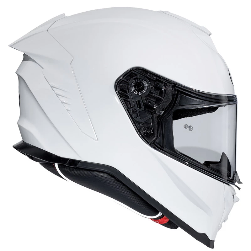 It is a high-strength Clear visor, processed with anti-scratch treatment and predisposed to the insertion of the Pinlock ยฎ anti-poaching system. A Pinlockยฎ lens is in the box, included in the price. The visor block is placed in the center of the chin and is easily operated: a simple click makes the helmet even quieter and safer especially at high speeds. The locking system is double-ringed, extremely safe even at high speeds.