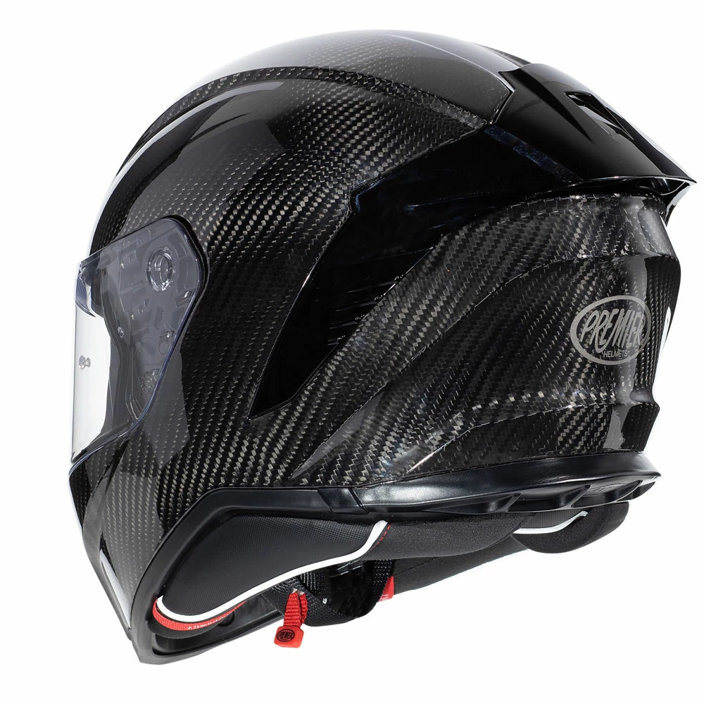 Hyper, great news 2020, is the all-range racing top offered by Premier. For this aggressive design and excellent technical characteristics, the company has put all its decades of experience in the racing field on the field. Hyper is a sports helmet but not extreme. We could use it in the race, but also on the road thanks to the comfortable interior and an adequate ventilation system that does not make you regret the air conditioning. Dark smoked visor included in the box. The long study of the department, which has designed the entire realization taking care of even the smallest details, has led to a product of the highest quality that will be recognized and appreciated especially by track lovers. Comfortable, light, quiet, aerodynamic and innovative shapes are the key aspects of this helmet, making it the highlight of the entire new collection. The shapes of Hyper are completely new and point to maximum aerodynamics: wind tunnel studies have brought numerous innovations to traditional lines, first of all the rear spoiler that in addition to making the helmet more beautiful and aerodynamic, hides the air extractor of the ventilation system. The air system reflects the top-of-the-range nature of this helmet, with two air intakes that ensure a perfect internal recirculation: an air intake placed on the chin and one on the top of the canopy ensure a constant flow and while the extractor on the back ensures a constant circulation of the air without taking anything away from the overall aerodynamics. The visor has also been the subject of a long study, curated by our R&D department: it is in fact 11% wider than previous Premier models, thus offering a greater field of view. It is a high-strength Clear visor, processed with anti-scratch treatment and predisposed to the insertion of the Pinlock ยฎ anti-poaching system. A Pinlockยฎ lens is in the box, included in the price. The visor block is placed in the center of the chin and is easily operated: a simple click makes the helmet even quieter and safer especially at high speeds. The locking system is double-ringed, extremely safe even at high speeds. The interiors are high-performing and the distribution of efforts is optimal. Once the helmet is worn, it is extremely quiet, thanks in part to the wind tunnel tests that have helped to make the lines even more aerodynamic in order to distribute the friction forces optimally at high speeds. The guide with prescription lenses is also comfortable with the closed visor thanks to a better distribution of padding. However, it comes with advance Padding System, a convenient kit included in the package that allows you to customize the fit to the highest level. All interiors are breathable and made anallergic thanks to the Sanitized treatment and are completely removable and washable. The internal shell is printed in EPS with different density depending on the zones, and ensures a particular ability to absorb energy in case of impacts and to redistribute it evenly avoiding the overload of the affected part. The outer canopy is produced in double measure to ensure a better fit depending on the size chosen: the small canopy covers sizes ranging from XS to M, while the larger one sizes ranging from The M to XXL. The outer shell is made of tricomposite fiber, a mix of aramidic fiber and epoxy resin that makes the helmet elastic but extremely resistant in case of impact. It is also available in the all-polished carbon version, for those who want an even better performing product with a focus on overall weight. Hyper is available in both glossy carbon and three different graphics, for a total of ten color variants, plus glossy black and matte black monocolors. The Bipolar graphics (BP variant) expresses details developed to fully respect the ribs and the aerodynamic drag requirements of the various technical components. Bright and bright colors create a perfect composite balance in a constant alternation of irregular shapes that cover the entire canopy. The aggressiveness and asymmetry of the shapes make Bipolar the most distinctive element of the Premier 2020 collection. The R-Wing (RW variant) graphics are characterized in the Premier 2020 collection for the extremely sporty design generated by the juxtaposition of different irregular shapes and with the constant alternation of colors. R-Wing is young and sparkling, suitable for running thanks to the perfect aerodynamics of the technical elements and the details taken care of in every detail. Delta graphics are essential in shapes and with an excellent color balance it has a sporty and minimal design. Delta remembers the racing graphics but the composure of the full shapes and the elegance of the lines that trace the canopy make it unique. A great element that speed lovers will love. Hyper is ready to install Bluetooth communication systems.
