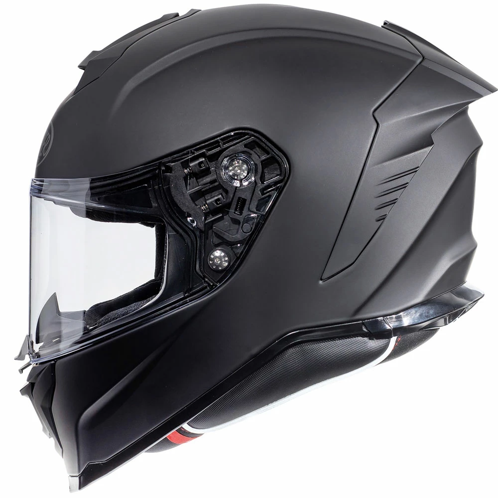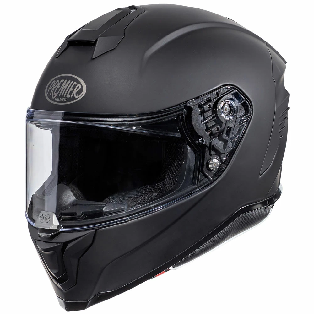 Hyper, great news 2020, is the all-range racing top offered by Premier. For this aggressive design and excellent technical characteristics, the company has put all its decades of experience in the racing field on the field. Hyper is a sports helmet but not extreme. We could use it in the race, but also on the road thanks to the comfortable interior and an adequate ventilation system that does not make you regret the air conditioning. Dark smoked visor included in the box. The long study of the department, which has designed the entire realization taking care of even the smallest details, has led to a product of the highest quality that will be recognized and appreciated especially by track lovers. Comfortable, light, quiet, aerodynamic and innovative shapes are the key aspects of this helmet, making it the highlight of the entire new collection. The shapes of Hyper are completely new and point to maximum aerodynamics: wind tunnel studies have brought numerous innovations to traditional lines, first of all the rear spoiler that in addition to making the helmet more beautiful and aerodynamic, hides the air extractor of the ventilation system. The air system reflects the top-of-the-range nature of this helmet, with two air intakes that ensure a perfect internal recirculation: an air intake placed on the chin and one on the top of the canopy ensure a constant flow and while the extractor on the back ensures a constant circulation of the air without taking anything away from the overall aerodynamics. The visor has also been the subject of a long study, curated by our R&D department: it is in fact 11% wider than previous Premier models, thus offering a greater field of view. It is a high-strength Clear visor, processed with anti-scratch treatment and predisposed to the insertion of the Pinlock ยฎ anti-poaching system. A Pinlockยฎ lens is in the box, included in the price. The visor block is placed in the center of the chin and is easily operated: a simple click makes the helmet even quieter and safer especially at high speeds. The locking system is double-ringed, extremely safe even at high speeds. The interiors are high-performing and the distribution of efforts is optimal. Once the helmet is worn, it is extremely quiet, thanks in part to the wind tunnel tests that have helped to make the lines even more aerodynamic in order to distribute the friction forces optimally at high speeds. The guide with prescription lenses is also comfortable with the closed visor thanks to a better distribution of padding. However, it comes with advance Padding System, a convenient kit included in the package that allows you to customize the fit to the highest level. All interiors are breathable and made anallergic thanks to the Sanitized treatment and are completely removable and washable. The internal shell is printed in EPS with different density depending on the zones, and ensures a particular ability to absorb energy in case of impacts and to redistribute it evenly avoiding the overload of the affected part. The outer canopy is produced in double measure to ensure a better fit depending on the size chosen: the small canopy covers sizes ranging from XS to M, while the larger one sizes ranging from The M to XXL. The outer shell is made of tricomposite fiber, a mix of aramidic fiber and epoxy resin that makes the helmet elastic but extremely resistant in case of impact. It is also available in the all-polished carbon version, for those who want an even better performing product with a focus on overall weight. Hyper is available in both glossy carbon and three different graphics, for a total of ten color variants, plus glossy black and matte black monocolors. The Bipolar graphics (BP variant) expresses details developed to fully respect the ribs and the aerodynamic drag requirements of the various technical components. Bright and bright colors create a perfect composite balance in a constant alternation of irregular shapes that cover the entire canopy. The aggressiveness and asymmetry of the shapes make Bipolar the most distinctive element of the Premier 2020 collection. The R-Wing (RW variant) graphics are characterized in the Premier 2020 collection for the extremely sporty design generated by the juxtaposition of different irregular shapes and with the constant alternation of colors. R-Wing is young and sparkling, suitable for running thanks to the perfect aerodynamics of the technical elements and the details taken care of in every detail. Delta graphics are essential in shapes and with an excellent color balance it has a sporty and minimal design. Delta remembers the racing graphics but the composure of the full shapes and the elegance of the lines that trace the canopy make it unique. A great element that speed lovers will love. Hyper is ready to install Bluetooth communication systems.