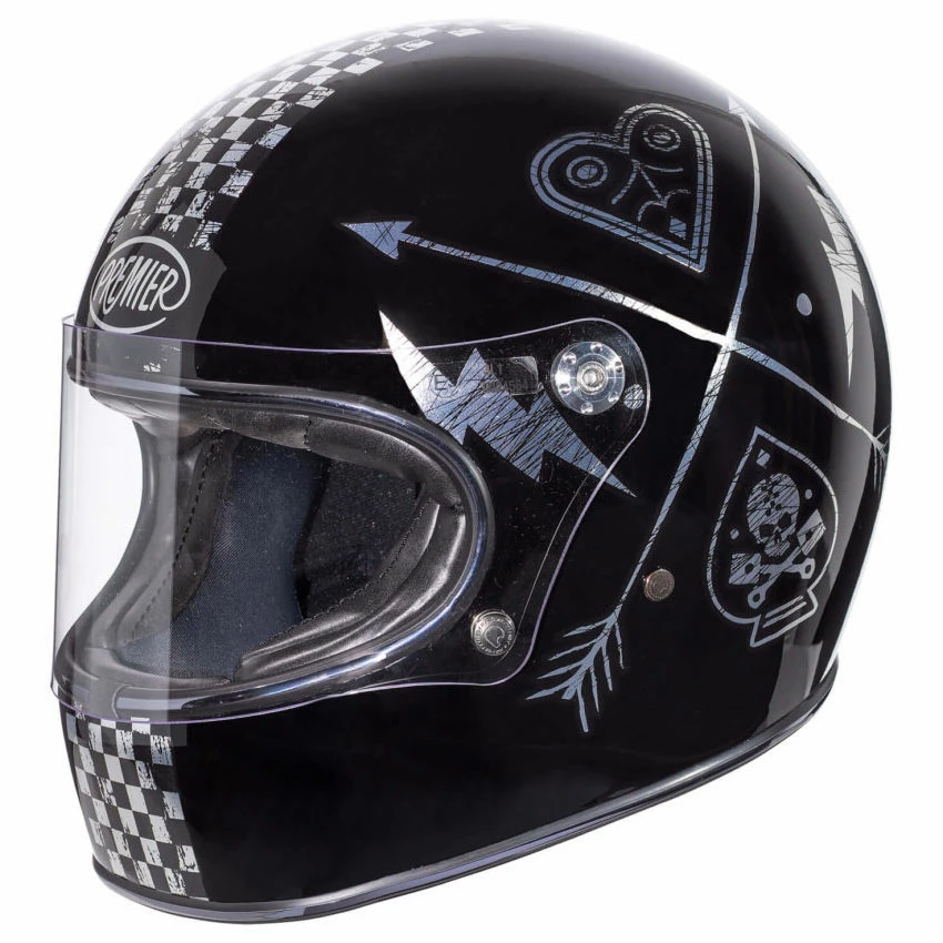 Trophy resumes the style and the shape of the β70s helmets, but with the modern security standard. The external shell is molded using DCA fiber, composed by carbon, dyneema and aramidic fiber mixed with epoxy resin. A mix of light fibers that contribute to create the strong but comfortable structure of the Trophy. The internal shell is moulded in different density Eps, to warrantee the best absorption of the energy caused by an impact. Even the visor, even if identic to the ones used during the β70s, is homologated and with an anti-scratch treatment due to warranty an excellent visibility. Itβs attached at the shell by the mechanism that assures the movement and by two knurled buttons on the bottom part. The inner lining are also in perfect harmony with the retroβ style and are made with anti-allergic Sanitized fabric with synthetic leather finishes. The cheek pads, also refinished with synthetic leather, while the retention system of the helmet is equipped with a Double D ring fastener. As all the other Premier Helmets also the Trophy model is homologated with the actual European law ECE 22-05. Features:Shell: 1. Material: Carbon aramidic fiber + epoxy resin. Lining: Removable cheek and washable with sanitized treatment. Visor: Anti-scratch, clear Innner visor: