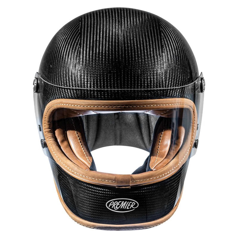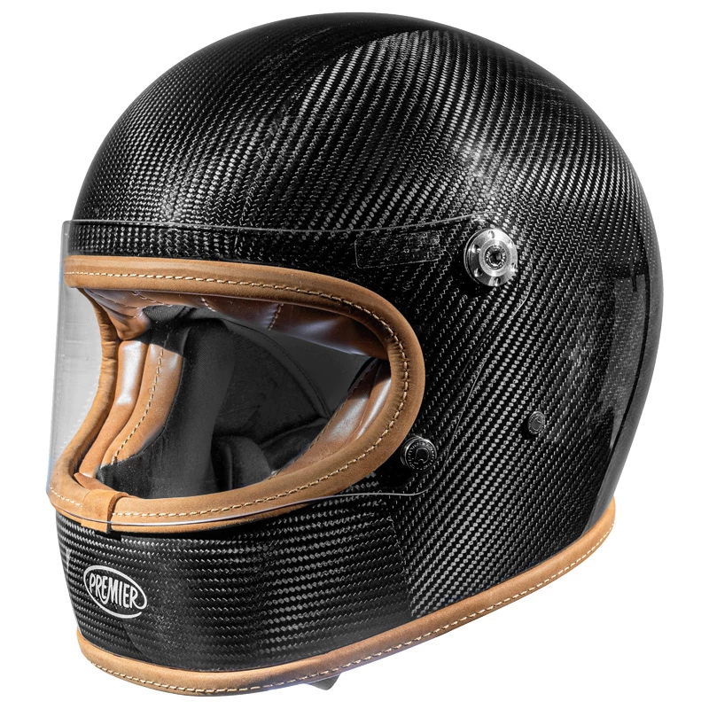 Trophy resumes the style and the shape of the β70s helmets, but with the modern security standard. The external shell is molded using DCA fiber, composed by carbon, dyneema and aramidic fiber mixed with epoxy resin. A mix of light fibers that contribute to create the strong but comfortable structure of the Trophy. The internal shell is moulded in different density Eps, to warrantee the best absorption of the energy caused by an impact. Even the visor, even if identic to the ones used during the β70s, is homologated and with an anti-scratch treatment due to warranty an excellent visibility. Itβs attached at the shell by the mechanism that assures the movement and by two knurled buttons on the bottom part. The inner lining are also in perfect harmony with the retroβ style and are made with anti-allergic Sanitized fabric with synthetic leather finishes. The cheek pads, also refinished with synthetic leather, while the retention system of the helmet is equipped with a Double D ring fastener. As all the other Premier Helmets also the Trophy model is homologated with the actual European law ECE 22-05. Features:Shell: 1. Material: Carbon aramidic fiber + epoxy resin. Lining: Removable cheek and washable with sanitized treatment. Visor: Anti-scratch, clear Innner visor: